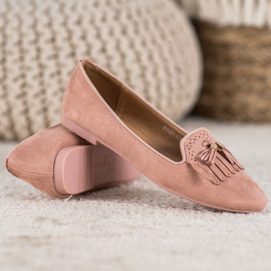 Otkrijte eleganciju i udobnost u jednom zahvaljujući lordovima od ružičaste brušene kože s resama proizvođača Fama. Ove moderne ženske mokasine oduševljavaju suptilnom, prigušenom nijansom ružičaste koja se savršeno slaže uz razne stilove - kako dnevne tako i svečanije.