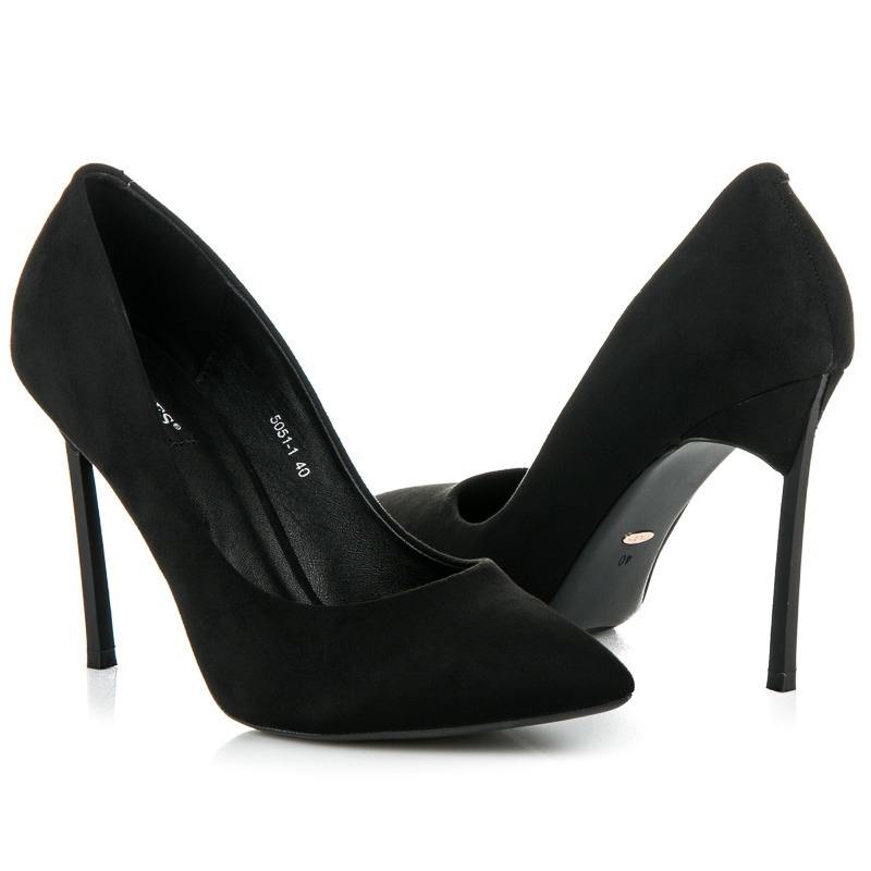 Visoke potpetice od brušene kože VICES - klasik u modernoj verziji. Crna, ekološka antilop koža, tanka točka i stiletto od 10,5 cm čine bezvremenski model, savršen za večer, proslavu ili elegantan događaj.