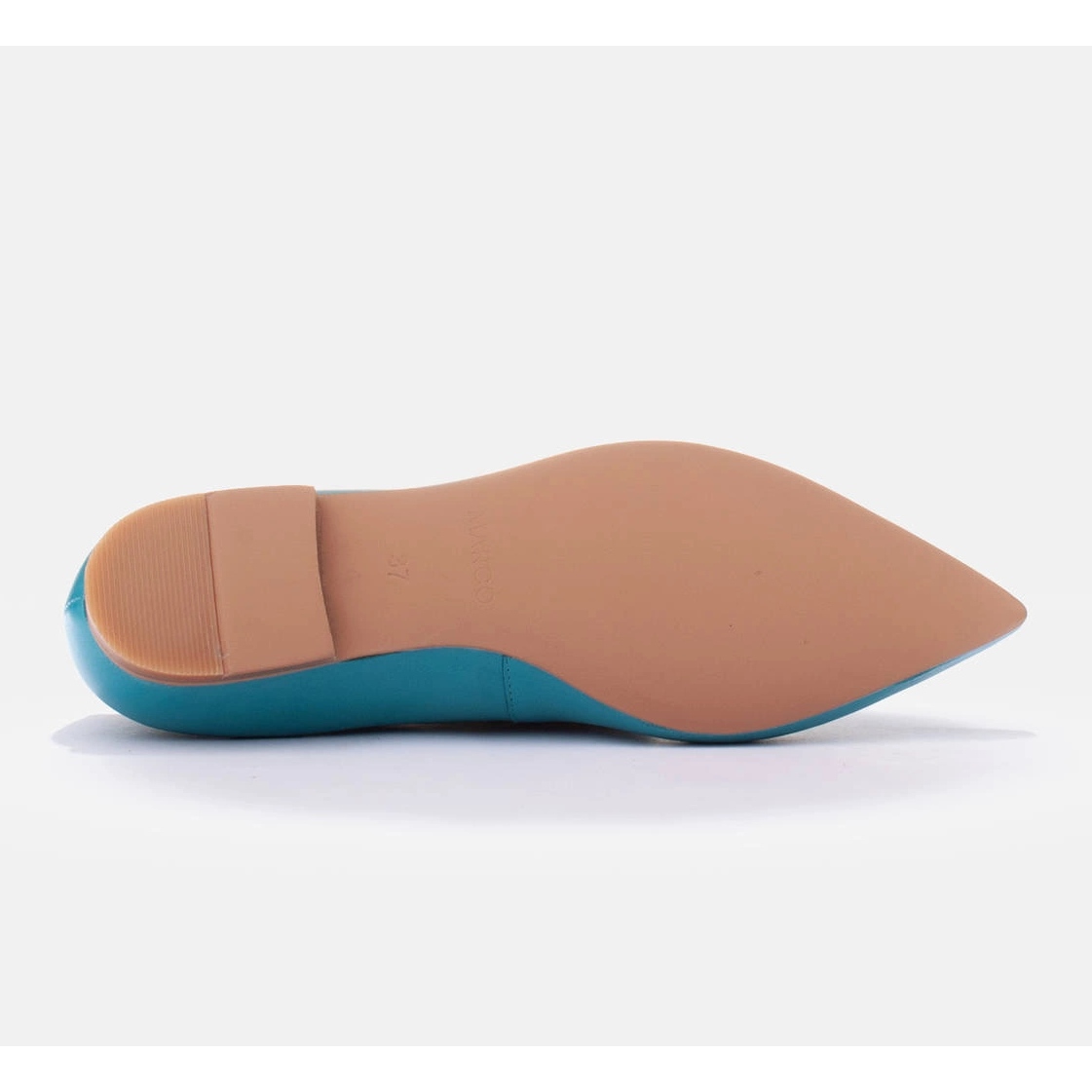 Klasične balerine s dekolteom u dekoru koji kombiniraju eleganciju s svakodnevnom udobnošću. Model je izrađen od plave kože visoke kvalitete u plavoj boji. Lagano izduženi, bademovi nožni prst dodaje vitkost, a minimalistički, jednolični dizajn čini da cipele odgovaraju uredskim i ležernim stilizacijama.