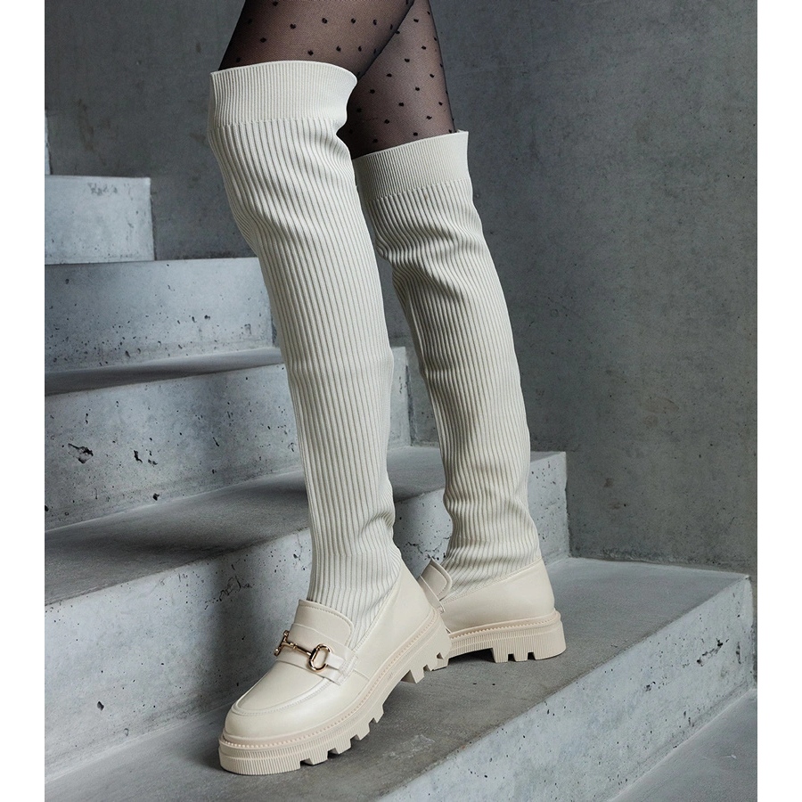 Ove se čizme razlikuju suptilnom laganom bež bojom, koja se savršeno odvija s raznim stilizacijama, kako svakodnevno, tako i u posebnim prilikama. Fleksibilni gornji dio pruža ne samo savršeno uklapanje, već i udobnost nošenja cijeli dan. Zahvaljujući okruglom nožnom prstu i visini preko koljena, ovaj model dodaje eleganciju i ženstveni stil.