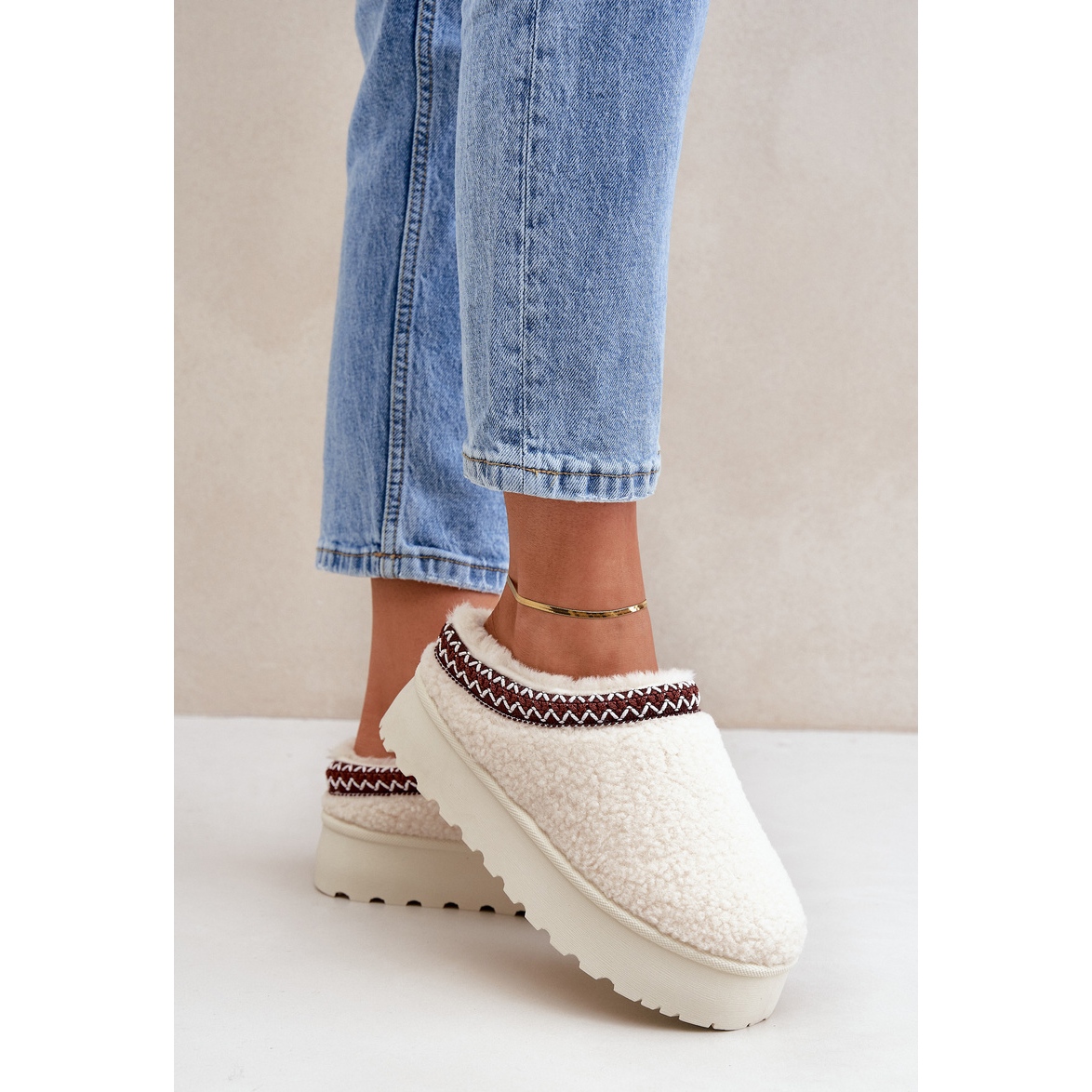 Pojedinosti: Svijetlo bež papuče od ovčje kože na platformu s krznom
