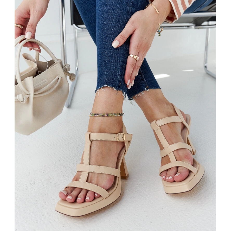 Detalji: Svijetlo bež sandale na visoku petu od Pirjo eko kože