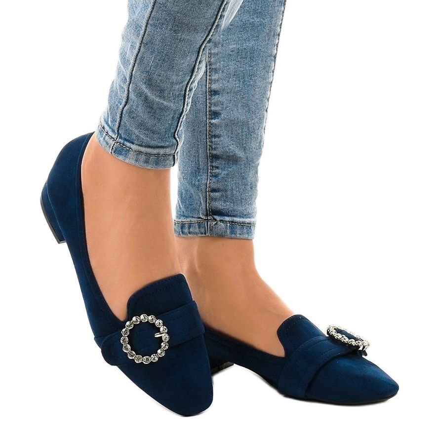 Unutrašnjost cipela izrađena je od ekološke kože, što povećava udobnost korištenja i njegu stopala. Mornarsko plava boja antilopa i crni potplat čine skladnu cjelinu, a dodatni kamenčići dodaju sjaj i profinjenost.
