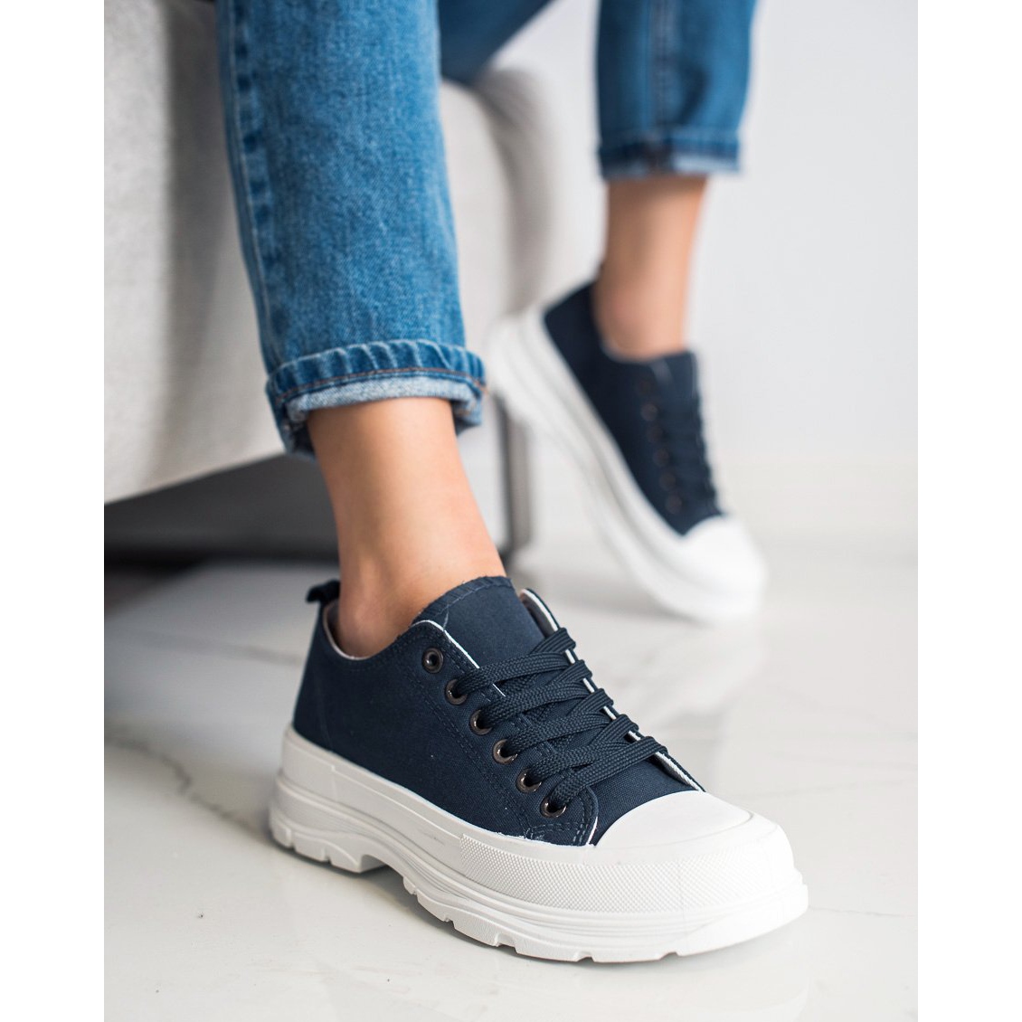 Mornarsko plave platform tenisice brenda SHELOVET nezaobilazne su za nadolazeću proljetnu i ljetnu sezonu. Njihov lagani, prozračni materijal čini ih savršenim za tople dane, osiguravajući udobnost ne samo tijekom šetnje, već i tijekom svakodnevnih aktivnosti. Jednostavna, elegantna tamnoplava boja savršeno pristaje uz razne stilove - kako sportske tako i ležerne.