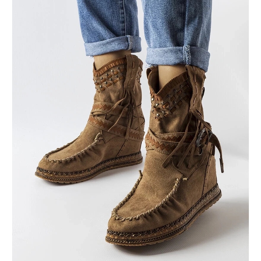 Marka Beausoleil poznata je po pažnji na detalje i udobnost nošenja. Tamno smeđe klinove čizme idealan su primjer kombinacije estetike i udobnosti - izgledaju sjajno u raznim stilizacijama, naglašavajući individualni karakter žene koja ih nosi. Oni također nude odgovarajuću podršku za stopala i odlično jastuk, tako da možete provesti cijeli dan bez nelagode.