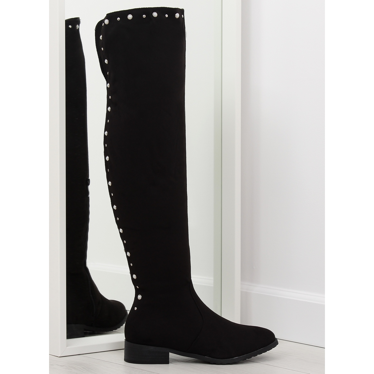 Čizme iznad koljena s biserima, crne 688 II-GAT