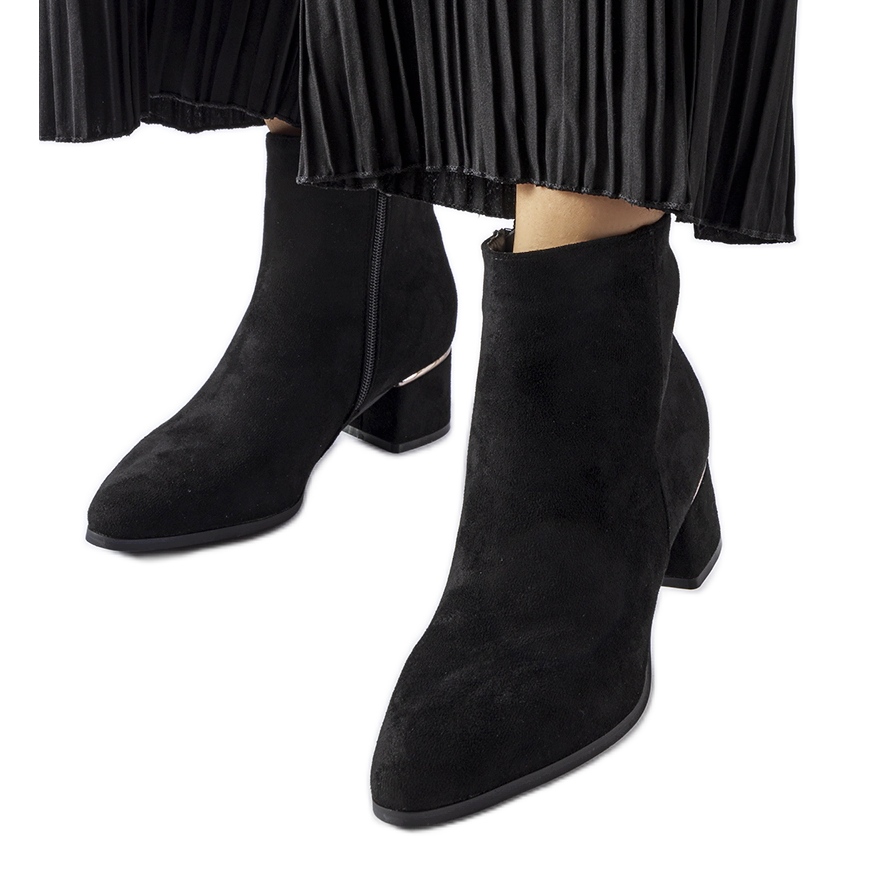 Klasične i moderne čizme su obavezne u jesenskom i zimskom garderobi. Izrađene od ekološke kože u antilop završetku, s bezvremenskom crnom bojom, dobro se stapaju s trapericama i haljinom ili suknjom. Zapetkom nosa daje im suvremeni karakter, a niska visina posta (5 cm) osigurava stabilnost i udobnost tijekom dana.
