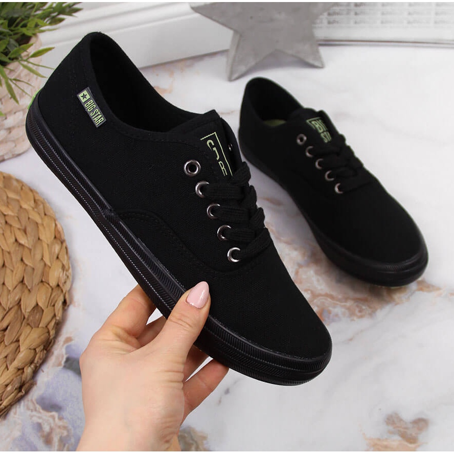 Potpuno crne tekstilne tenisice Big Star JJ274261 savršen su izbor za žene koje cijene moderan izgled i udobnost nošenja. Proizvod marke BIG STAR ističe se minimalističkim dizajnom u klasičnoj crnoj boji, što ga čini pogodnim za mnoge stilove - kako casual tako i sportske.