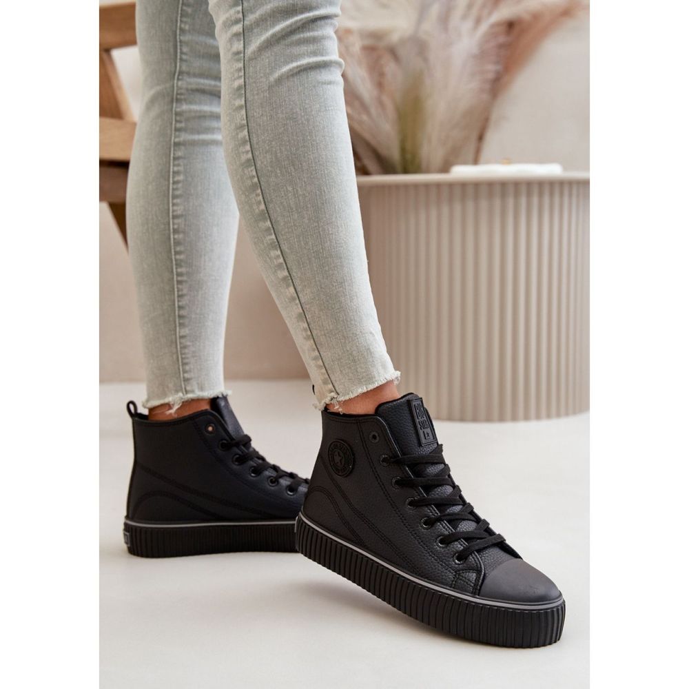 Model Big Star OO274790 Black - Korak u stilu tenisica savršena su kombinacija udobnosti i modernog dizajna koji će raditi u svakoj situaciji. Napravljene od visokokvalitetne ekološke kože, ove crne tenisice nisu samo elegantne, već i ekološki prihvatljive. Dodatni gornji dio gležnja i čvrsta, gumena platforma s visinom od 3,5 cm jamči stabilnost i udobnost nošenja.