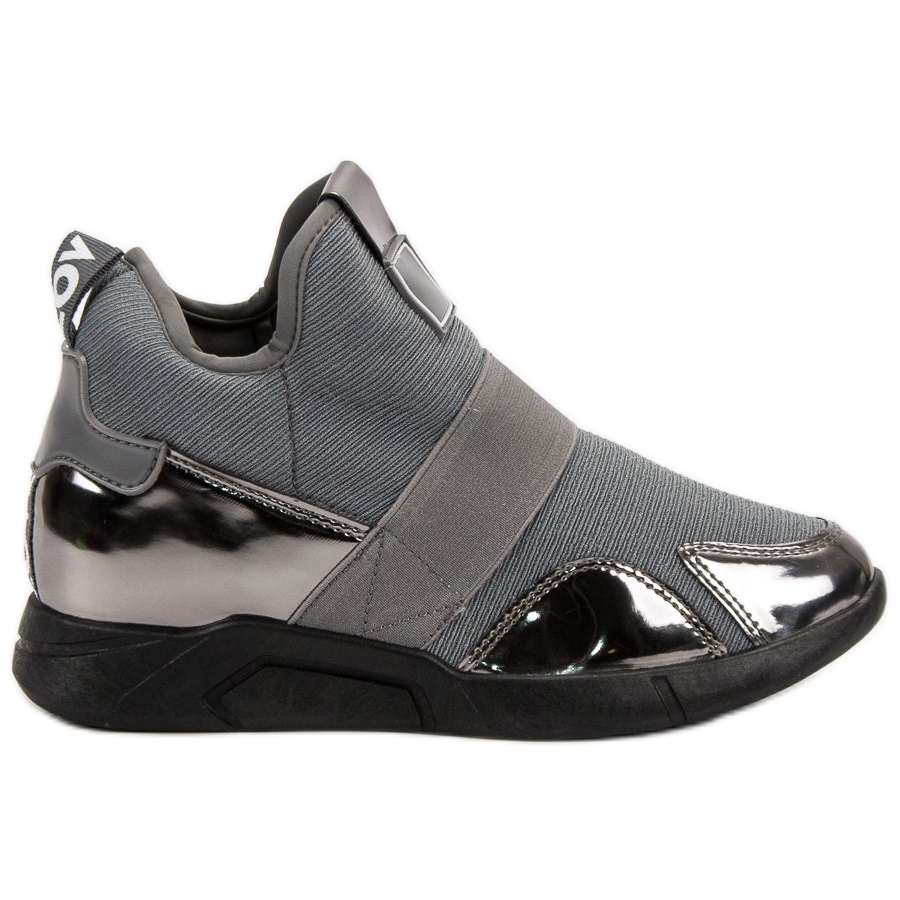 Otkrijte jedinstveni model koji spaja sportski stil s elegancijom - slip-on wedge tenisice u sivoj boji. Ove originalne cipele stvorene su za moderne žene koje se žele osjećati udobno i elegantno. Zahvaljujući visini klina u rasponu od 5 do 8 cm, dobit ćete dodatne centimetre, što će dodati samopouzdanje u svakoj situaciji.