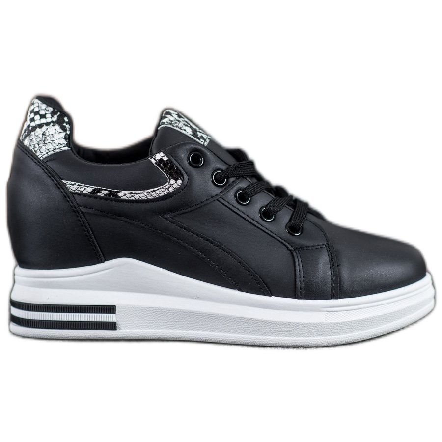 Otkrijte jedinstvene wedge tenisice marke Lovery - savršen spoj udobnosti i modernog dizajna. Ove elegantne crne cipele s niskim klinom savršen su odabir za svako godišnje doba. Zahvaljujući suptilnim umetcima šljokica, dobivaju moderan karakter koji ih razlikuje od ostalih modela.