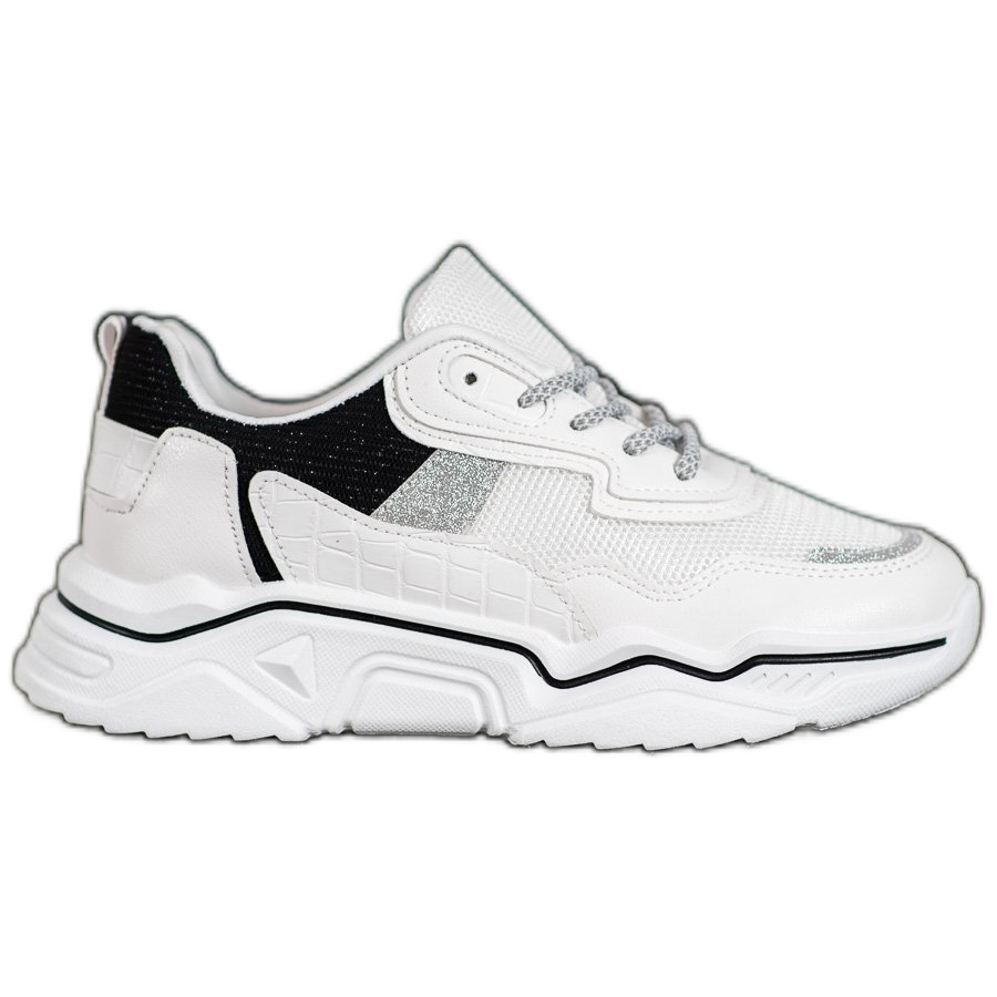 Otkrijte ženstvenost i modernost u punoj snazi zahvaljujući SHELOVET tenisicama s platformom sa svjetlucavim sjajem u bijeloj i crnoj boji. Ove sportske cipele savršena su kombinacija stila i udobnosti, savršene za svakodnevnu upotrebu.