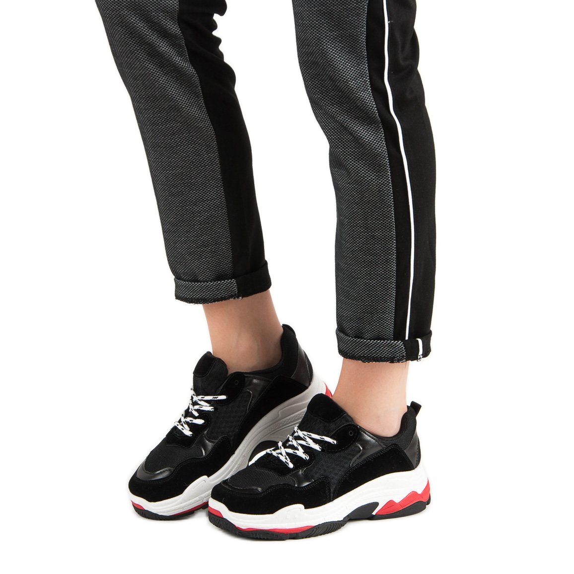 Visoka platforma od 5 cm čini da tenisice ne samo da dodaju visinu, već i pružaju stabilnost, štiteći gležanj i skočni zglob. Zahvaljujući korištenju kombiniranih materijala, cipele savršeno odgovaraju aktualnim trendovima, a njihova klasična crna boja pristaje mnogim stilovima.