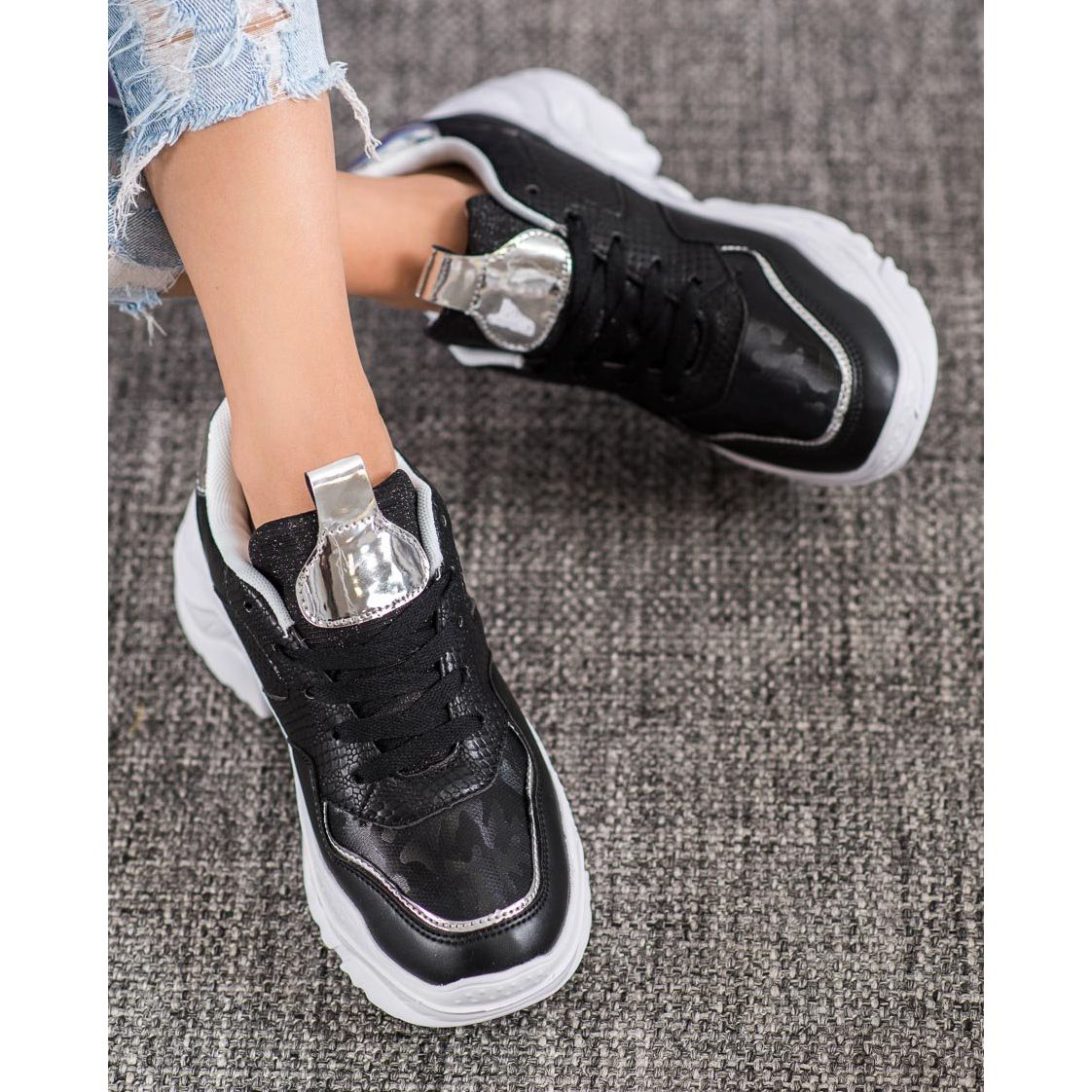 Pojedinosti: SHELOVET Tenisice od eko kože crna siva