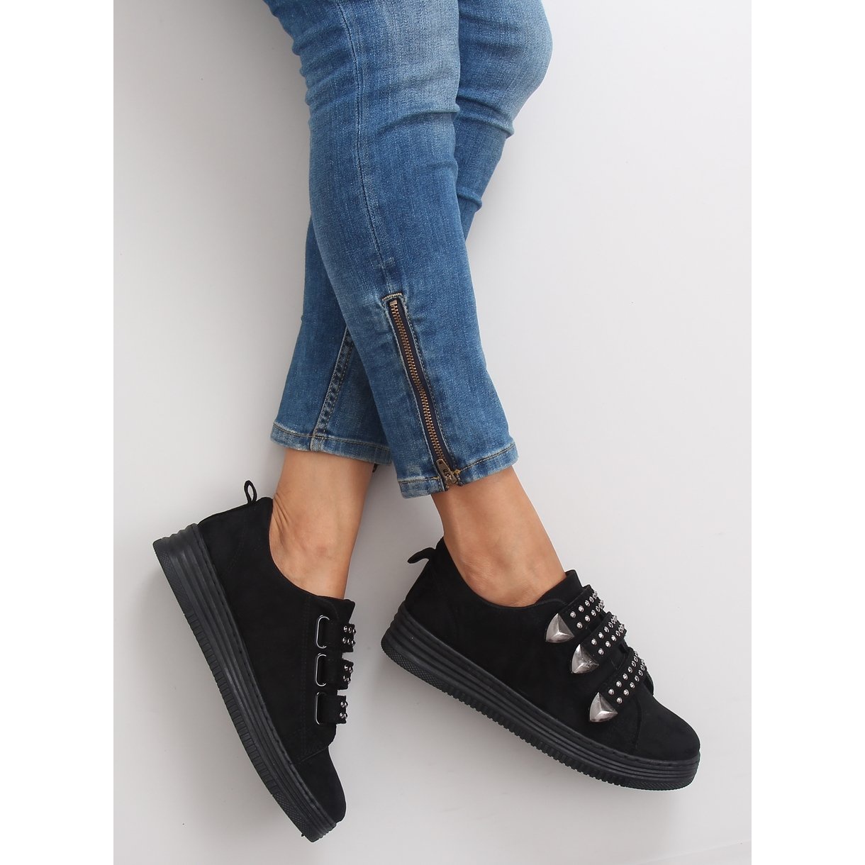 Unutrašnjost cipela pažljivo je obložena tkaninom koja osigurava udobnost tijekom cijelog dana. Tenisice imaju okrugli vrh, što dodaje lakoću i ležeran karakter. Ukrašene malim nitnama, one predstavljaju moderan naglasak koji se savršeno uklapa u aktualne trendove.