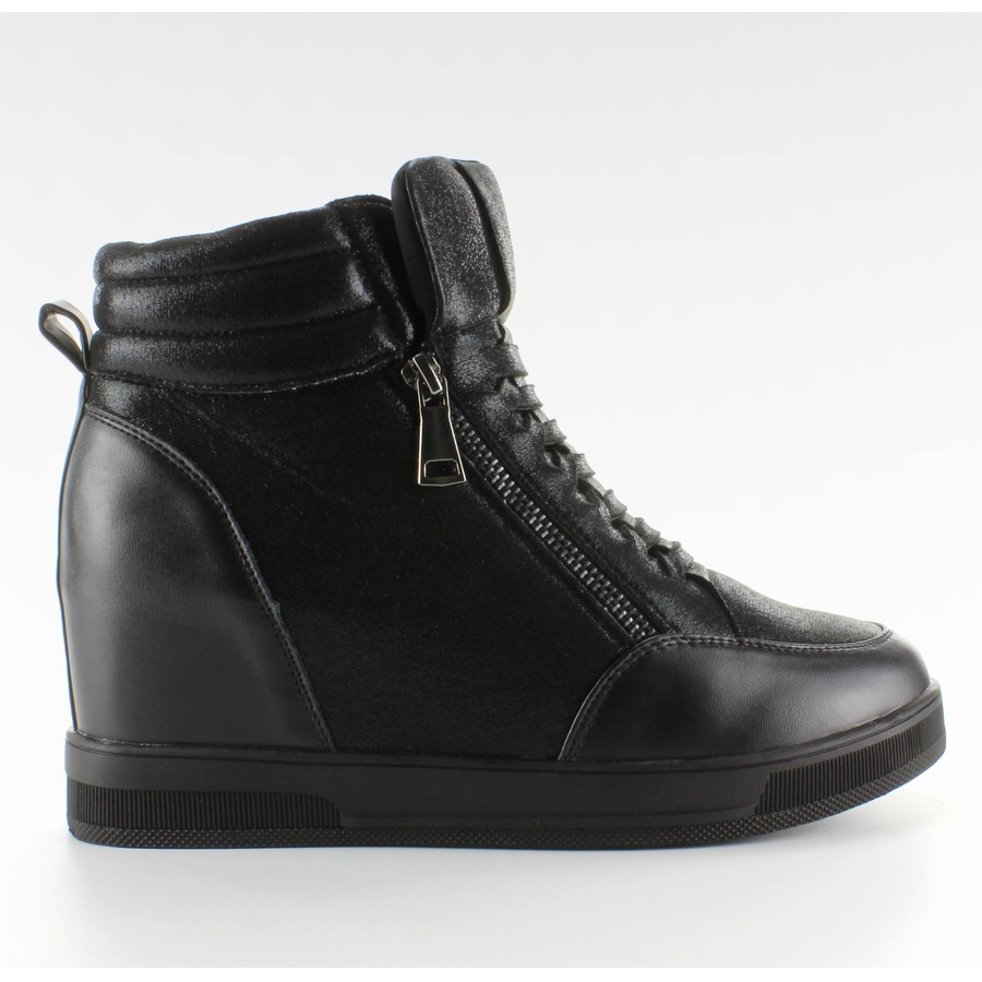 R13 tenisice - crne, sa skrivenom klinom (6,5 cm), spajaju sportski karakter sa ženstvenom siluetom. Visoki gornji dio gležnja naglašava nogu, a skriveni klin diskretno stanji i dodaje nekoliko centimetara bez žrtvovanja udobnosti. Ukrasne vezice sprijeda dodaju stil, a praktični patentni zatvarači sa strane olakšavaju brzo obuvanje i skidanje.