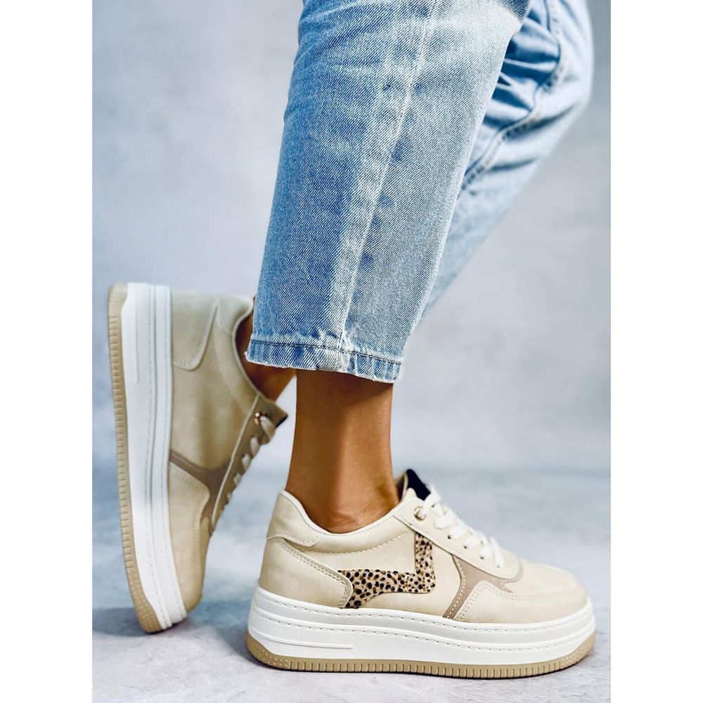 Tenisice se odlikuju elegantnom nijansom bež boje i jedinstvenim umetcima s mrljama leoparda koji im daju moderan i upečatljiv izgled. Izrađene od visokokvalitetne ekološke kože osiguravaju udobnost nošenja, a njihova unutrašnjost obložena tkaninom čini ih iznimno ugodnima za stopala.