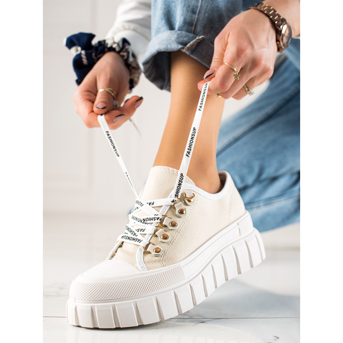TRENDI TRENDI Tenisice s vezanjem na platformi bež