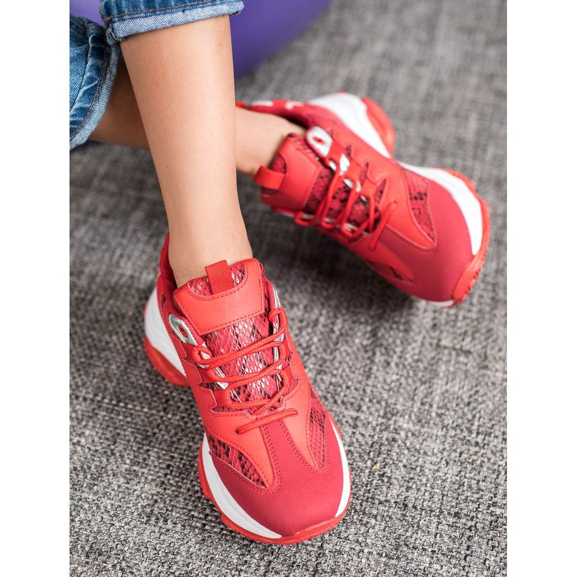 Pojedinosti: SHELOVET Tenisice sa platformom Snake Print crvena