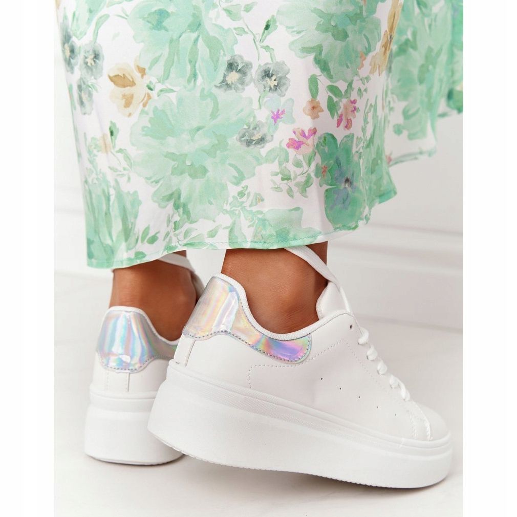 Detalji: Tenisice za sportsku obuću na platformi Bijelo i srebrno sjajno sjajno bijela srebro