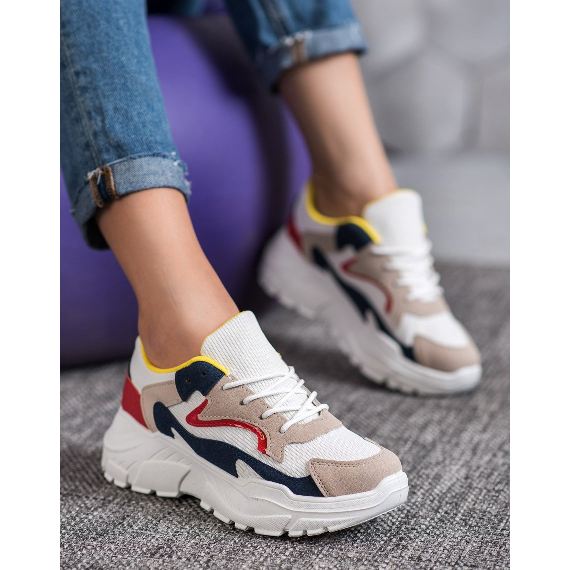 Raznobojni gornji dio dodaje kreativnost i svježinu, pa SHELOVET tenisice pristaju uz mnogo različitih odjevnih kombinacija. Potpetica je zatvorena i mekana, što pruža dodatnu udobnost, a okrugli vrh čini da izgledaju iznimno elegantno.