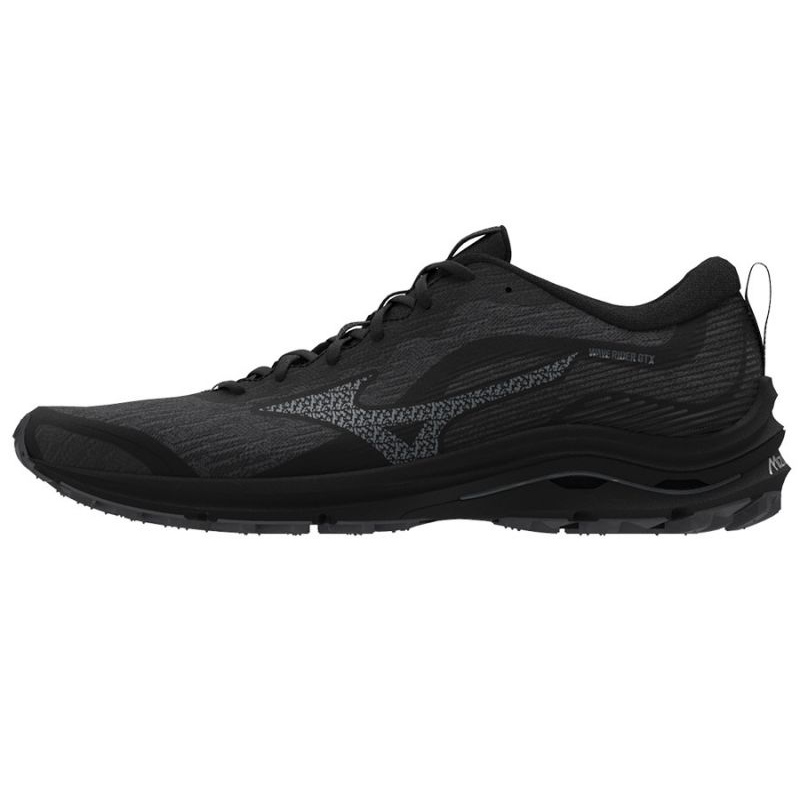 Mizuno Wave Rider GTX M J1GC227901 Trvna cipele - muške, niske, čipke -up trening cipele dizajnirane za trčanje na tvrdim površinama (asfalt). Klasične, crne boje sa sivim detaljima čine da model dobro funkcionira i tijekom treninga i svakog dana.