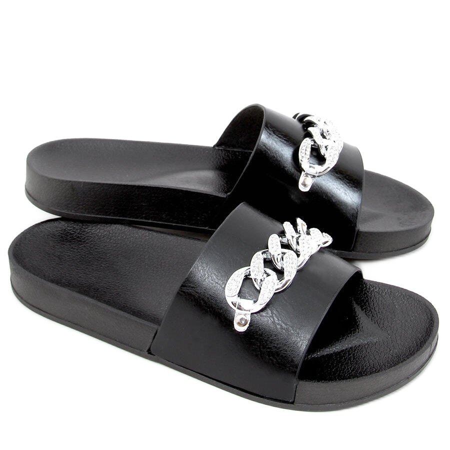 Predstavljamo Tilia Black lančane japanke - koje ove sezone mora imati svaka moderna žena! Ove elegantne crne japanke odlikuje se elegantnim lancem ukrašenim sjajnim kamenčićima koji privlači pozornost i svakom stajlingu daje jedinstven karakter. Zahvaljujući ravnoj peti i profiliranom unutarnjem ulošku udobne su za nošenje tijekom cijelog dana - savršene za svakodnevnu upotrebu!