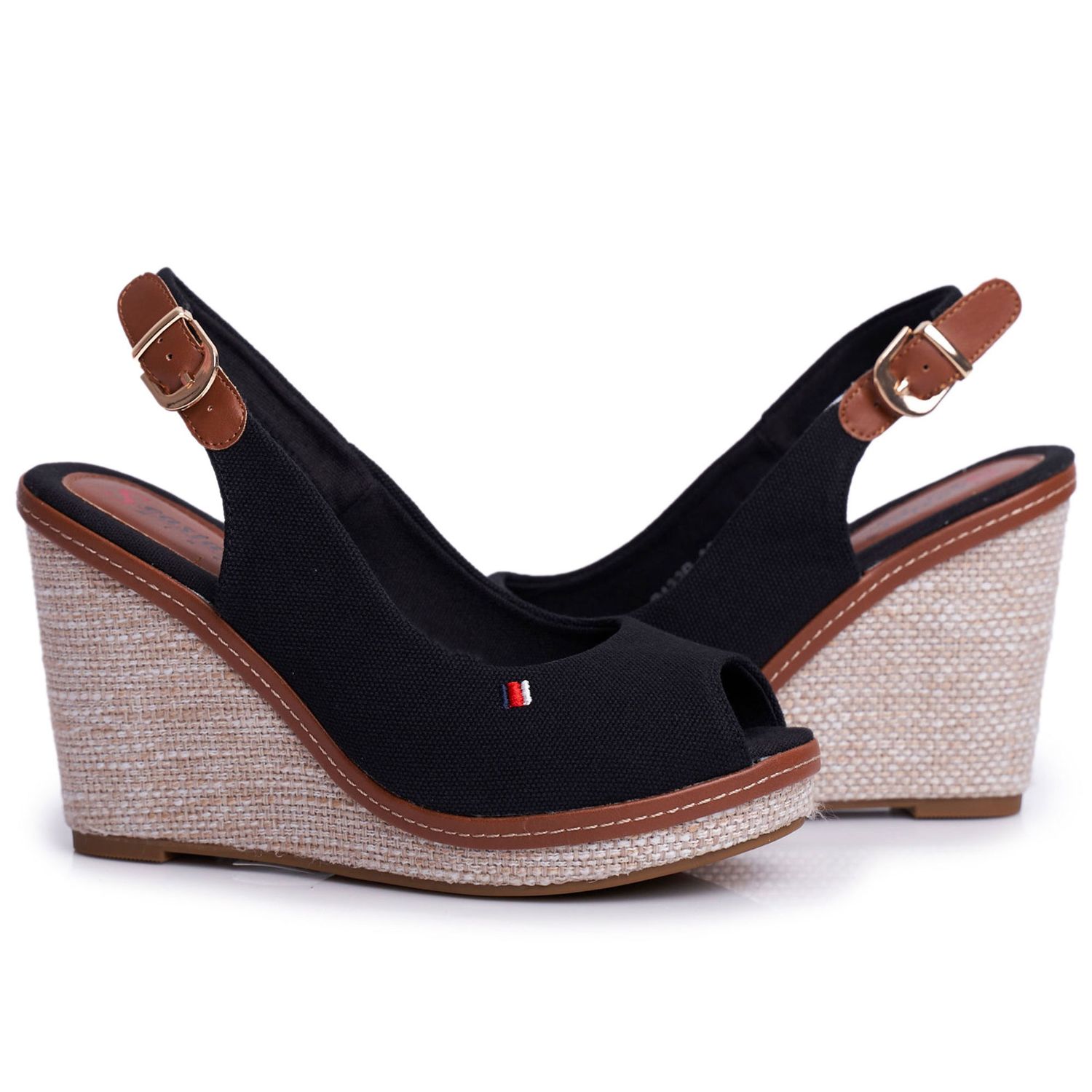 Pojedinosti: PS1 Tommy crne pletene sandale na klin smeđa crna