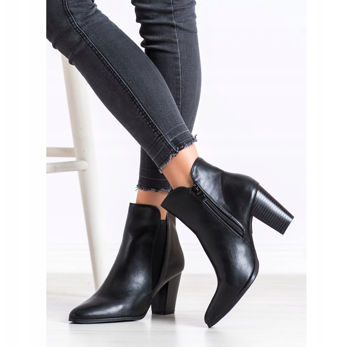 Izrađene od visokokvalitetne ekološke kože, čizme su dizajnirane za jesen i zimu. Gornjište koje seže iznad gležnja osigurava odgovarajuću izolaciju i udobnost nošenja, a blok peta visine 7,5 cm dodaje eleganciju i naglašava figuru. Dizajn cipela nadopunjen je patentnim zatvaračem sa strane, koji ne samo da olakšava obuvanje, već im daje i moderan karakter.