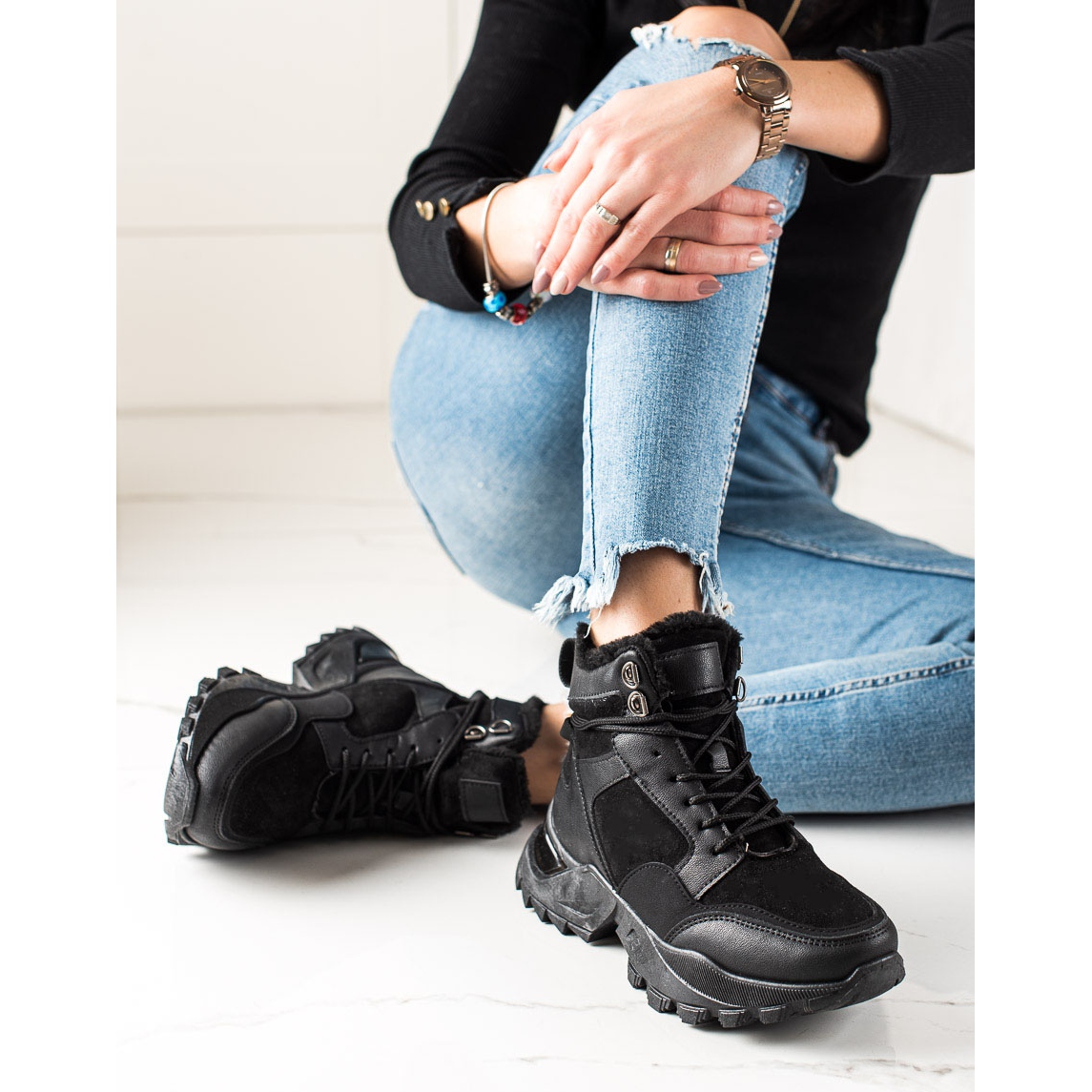 Pojedinosti: TRENDI Tople čizme na vezanje crna