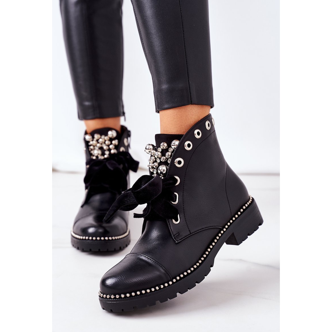 PS1 Tople čizme s metalnim biserima, kamenčićima i vrpcom crnom Perlom crna