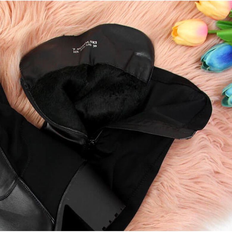 Izrađene od ekološke kože, čizme jamče ne samo elegantan izgled, već i izdržljivost. Dodatna izolacija čini ih savršenim rješenjem za hladnije dane, osiguravajući toplinsku udobnost. Elastični rastezljivi materijal savršeno pristaje uz nogu, što povećava udobnost nošenja i čini da izgledaju iznimno elegantno.
