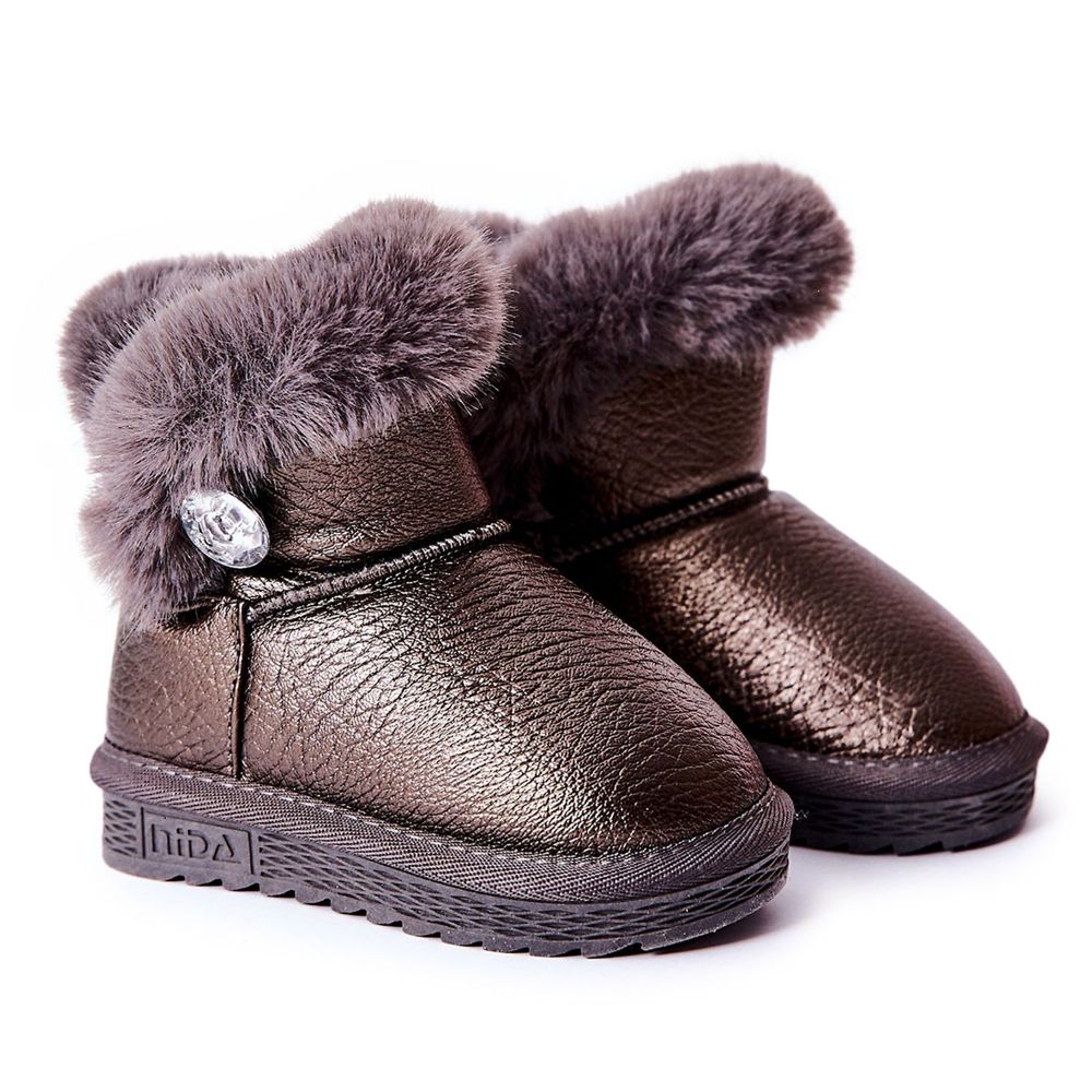Tople i udobne snježne čizme za djevojke - savršene za hladne, vlažne dane. Unutrašnjost obložena mekim krznom pruža toplinu, a vrh ekološke kože štiti od vlaženja. Umetnuti obrazac olakšava stavljanje, dekorativni gumb dodaje šarm, a potplat bez klizanja osigurava stabilnost prilikom igranja u snijegu.