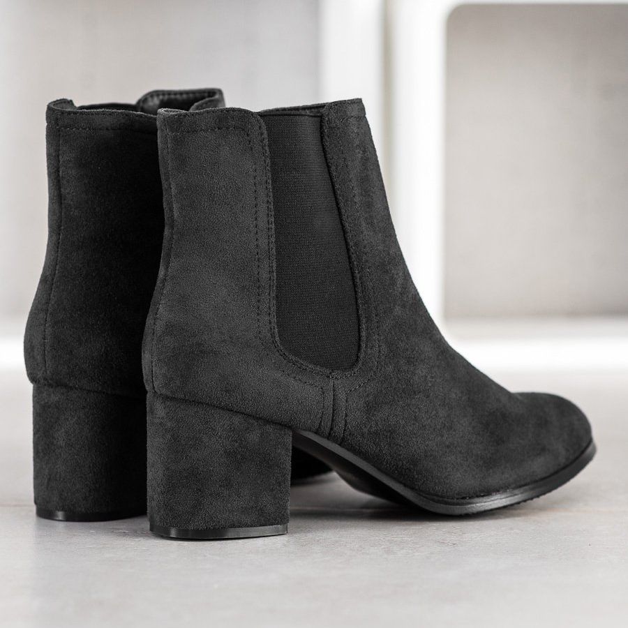 Predstavljamo tople cipele na visoku petu renomiranog proizvođača J. Star koje oduševljavaju stilom i udobnošću. Ove elegantne crne čizme savršena su nadopuna svakom jesenskom i zimskom stajlingu. Izrađene od visokokvalitetne imitacije antilopa, jamče ne samo estetski izgled, već i izdržljivost.