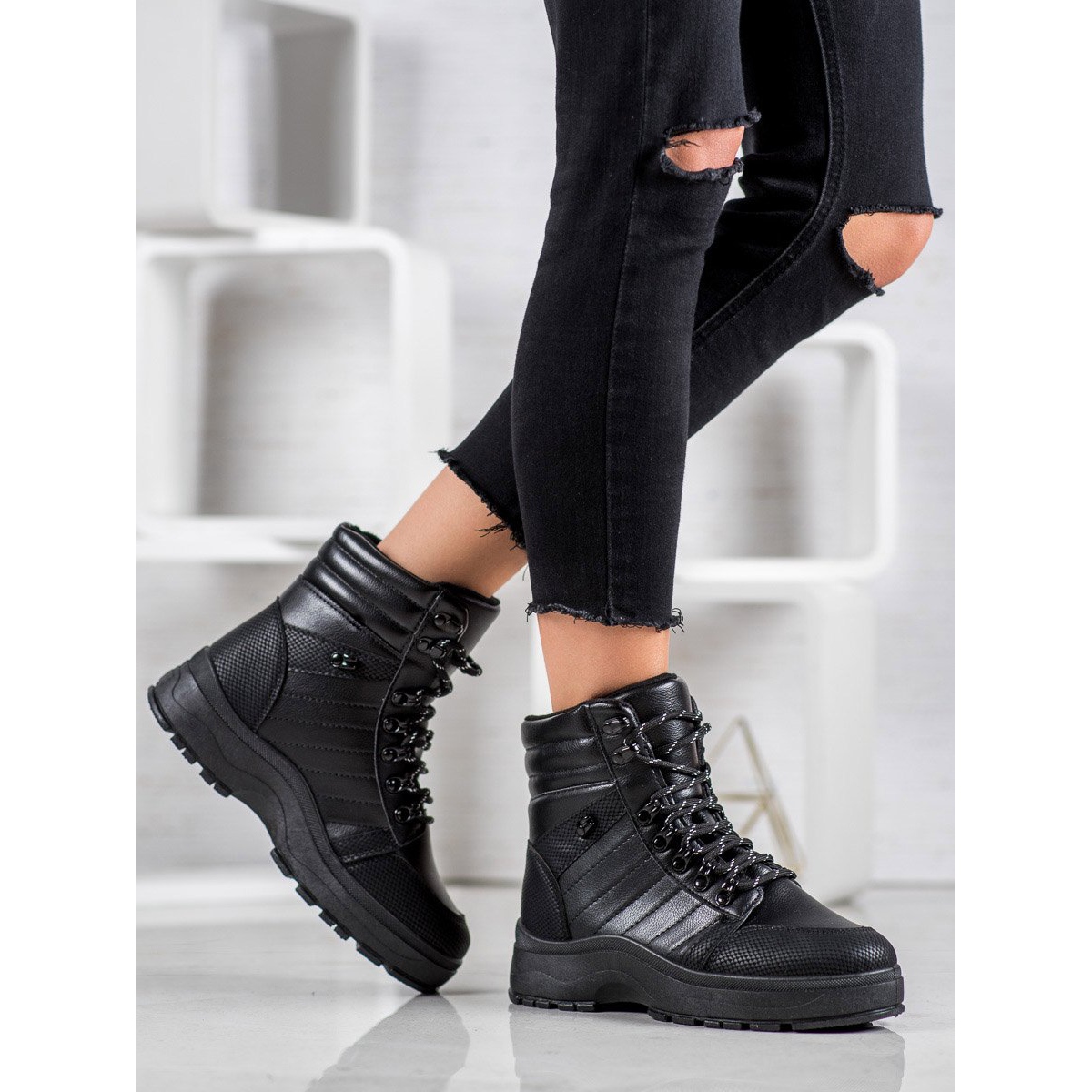 Kopčanje na vezicu omogućuje precizno prilagođavanje stopalu, a unutarnja izolacija od tkanine jamči udobnost iu najhladnijim danima. SHELOVET tenisice nisu samo funkcionalne, već i moderan naglasak, savršene za svakodnevnu upotrebu. Uz to, njihova gornja visina od 12 cm savršeno pristaje uz nogu.