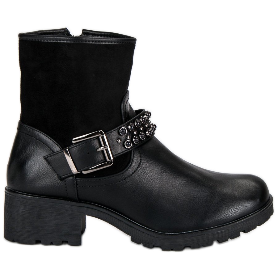 Čizme su iznutra podstavljene toplom ovčijom kožom, što ih čini savršenim izborom za hladne dane. Crna boja, koja je uvijek u vrhu, čini ove radnice lakim za uklapanje u razne stilove - od casual do elegantnijih. Ukrasna kopča i detalji sa kamenčićima daju karakter, a niska peta (5 cm) osigurava udobnost tijekom cijelog dana.