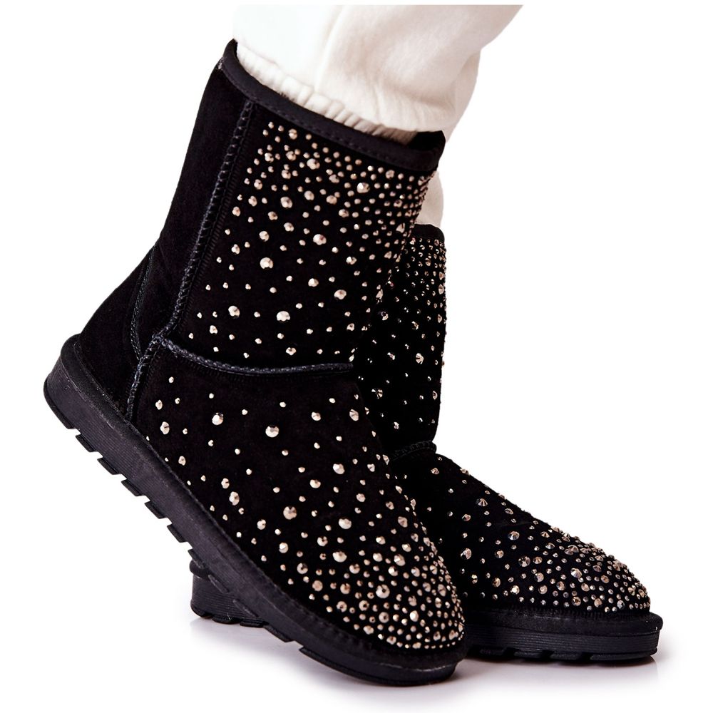 Mukleki izoliran Mariell -ovim rhinestones - crne čizme snijega