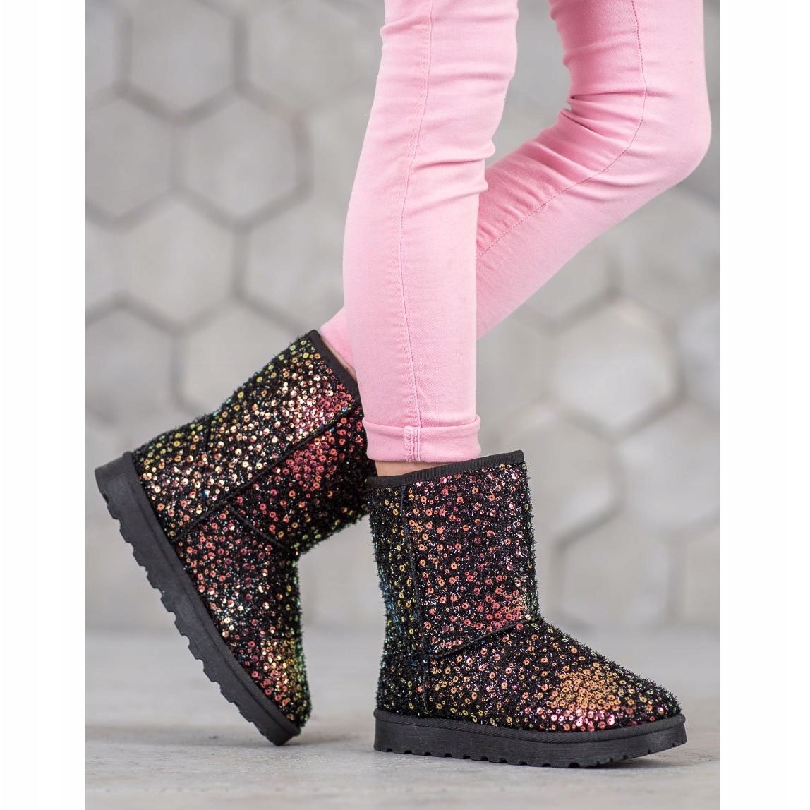 Pojedinosti: SHELOVET Topli mukluki sa šljokicama crna