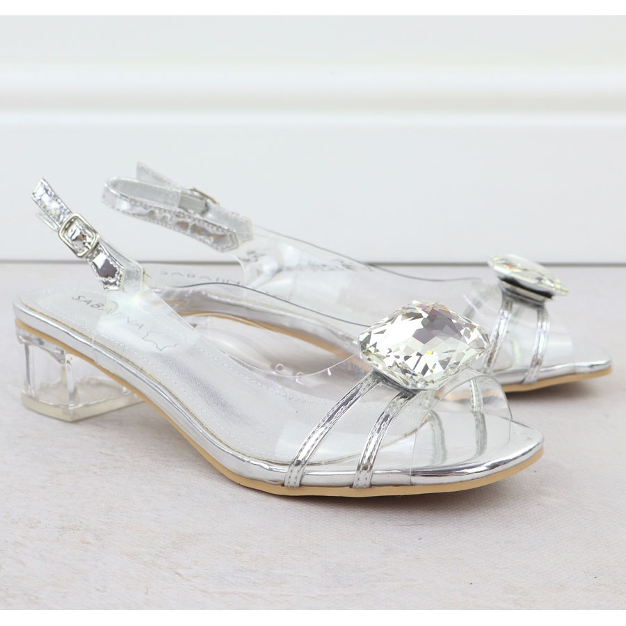 Sabatina Transparentne ženske potpetice Silver Sabatina 33506-7 srebro