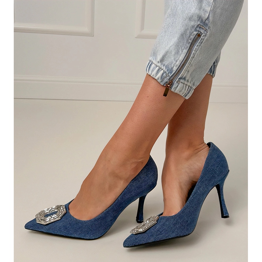 Pumpe G423 na Szpilka izuzetno su elegantan izbor za svaku ženu koja želi kombinirati eleganciju s modernim dizajnom. Napravljene od plave traper tkanine, ove pumpe razlikuju se ne samo bojama, već i suptilnim detaljima u obliku cirkona, koji im daju poseban sjaj.