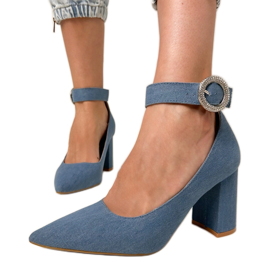 Pojedinosti: Traper pumpe na posta s kopčom i cirkonima plava