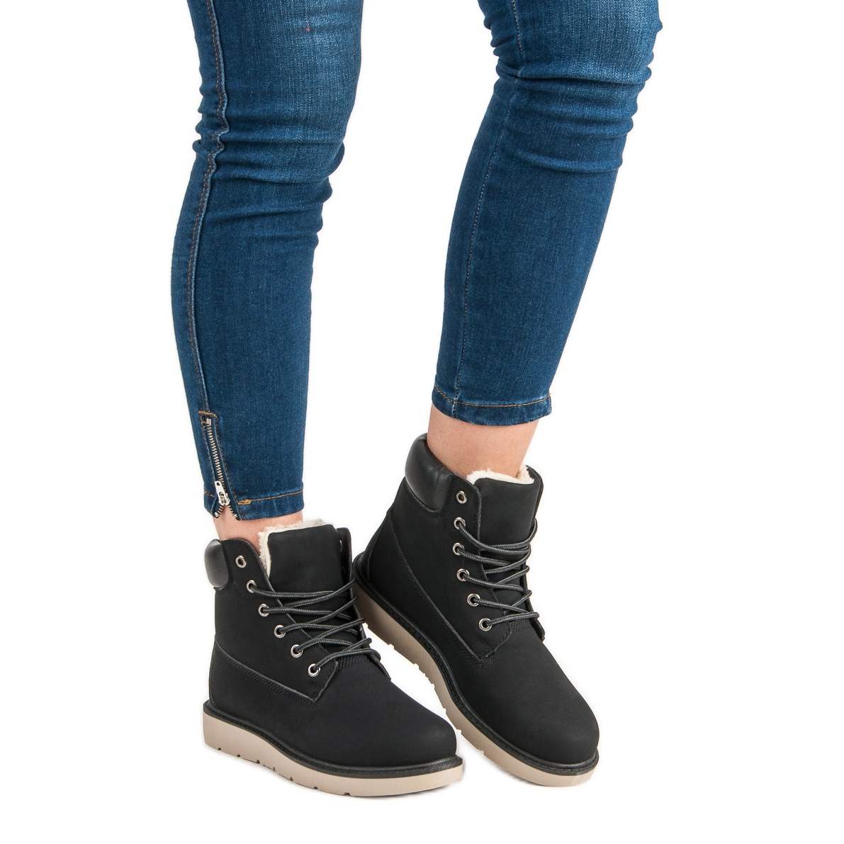 U unutrašnjosti je mekani umetak i topla krznena izolacija, koja jamči toplinu i udobnost čak i za mraznih dana. Okrugli vrh ne samo da daje karakter, već i pruža udobnost prstima. Čizme se kopčaju klasičnim vezicama što olakšava prilagođavanje nozi.