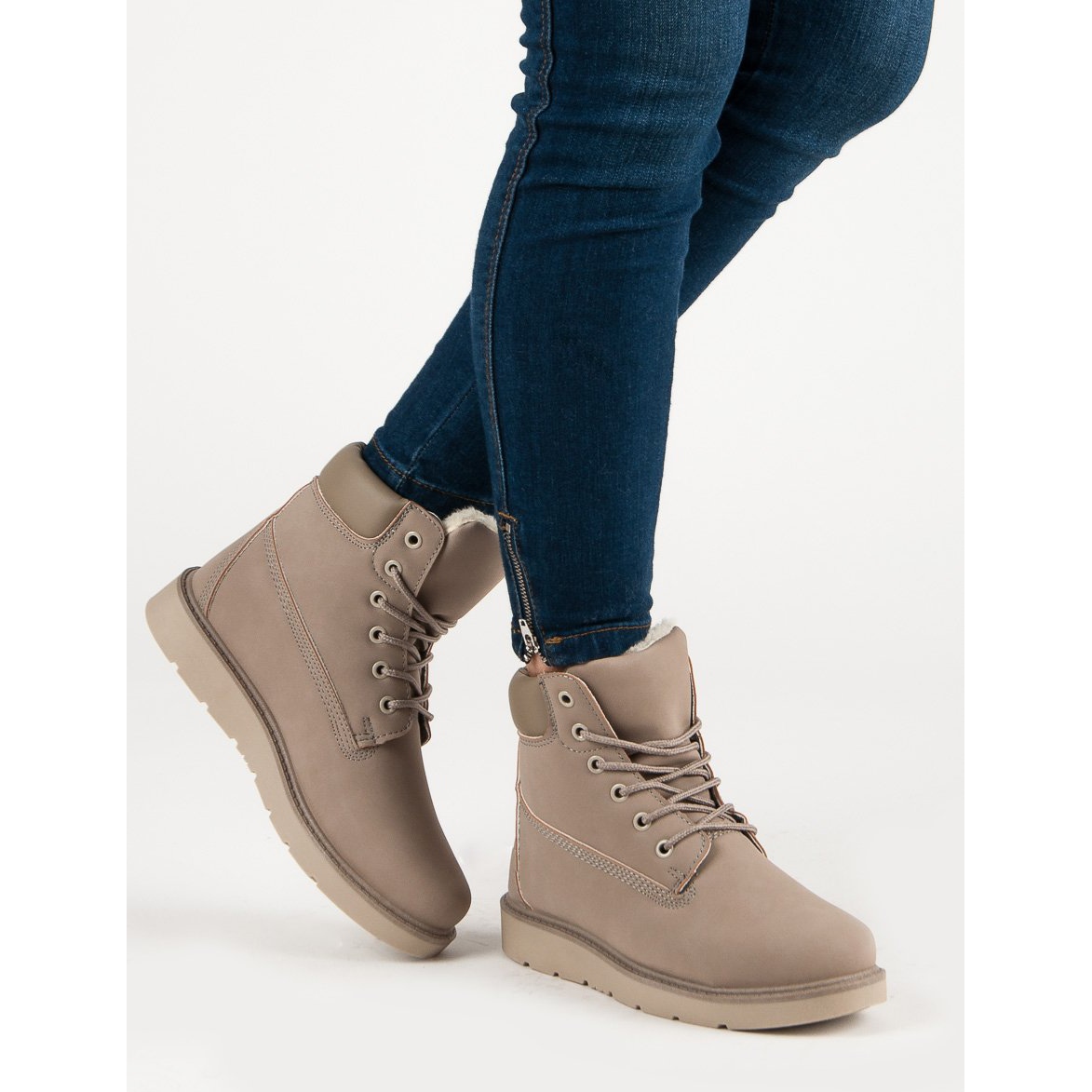 Njihova smeđa boja iznimno je univerzalna pa čizme lako možete uklopiti uz razne kombinacije. Izrađene od materijala s odgovarajućim toplinskim svojstvima, pružit će toplinu iu hladnijim danima. Okrugli vrh i ugrađena, mekana peta jamče udobno nošenje, a gornja visina od 13 cm pruža dobru zaštitu gležnja.