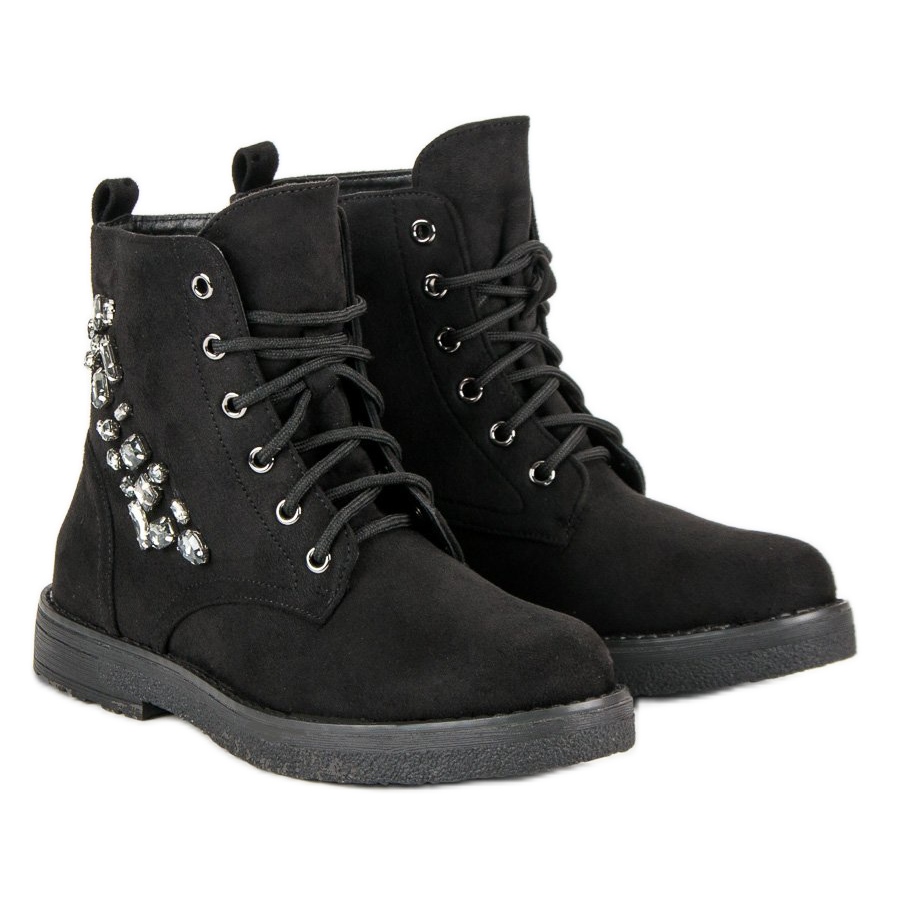 Oblikovan, zaobljen vrh i ravna potpetica visine 3 cm osiguravaju maksimalnu udobnost, a elegantno vezivanje i patentni zatvarač omogućuju jednostavno obuvanje i izuvanje. Kamenčići na gornjem dijelu dodaju moderan štih, čineći ove čizme pravim privlačnim.