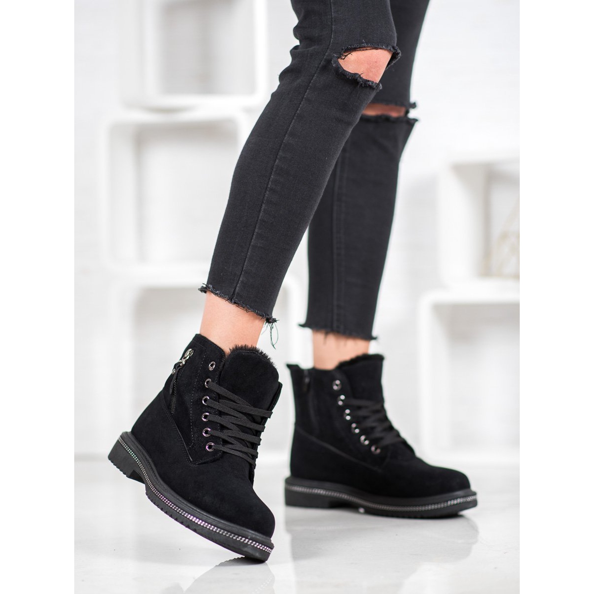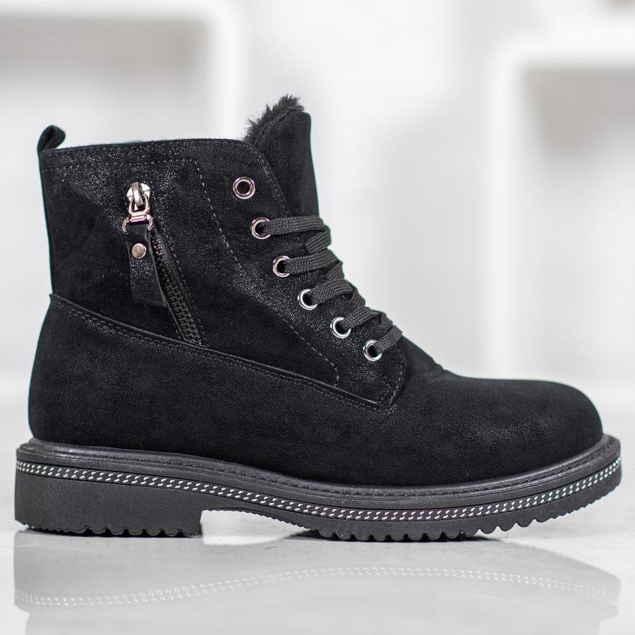 SHELOVET Trappers With Glitter u crnoj boji idealan su prijedlog za žene koje žele spojiti moderan izgled s udobnošću. Ove moderne tenisice odlikuje se višim gornjištem koje savršeno štiti stopala od nepovoljnih vremenskih uvjeta. Zahvaljujući vezivanju, lako se prilagođavaju individualnom obliku stopala, što osigurava udobnost nošenja tijekom cijelog dana.