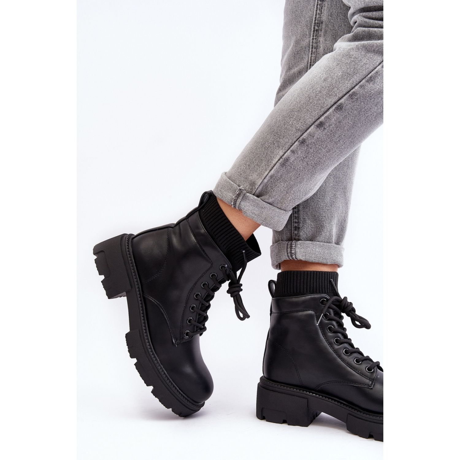 Trapperi su ugrađeni u čvrstu, ravnu petu visoku 5 cm i platformu od 3 cm, što osigurava stabilnost i udobnost u svim uvjetima. S gornjim dosegom 15 cm, ovaj model savršeno štiti gležnjeve, a umetnuti rez s klasičnim vezanjem na prednjoj strani daje im karakter. Zaokruženi nožni prsti i ukočena peta naglašavaju ne samo moderan izgled, već i udobnost nošenja.