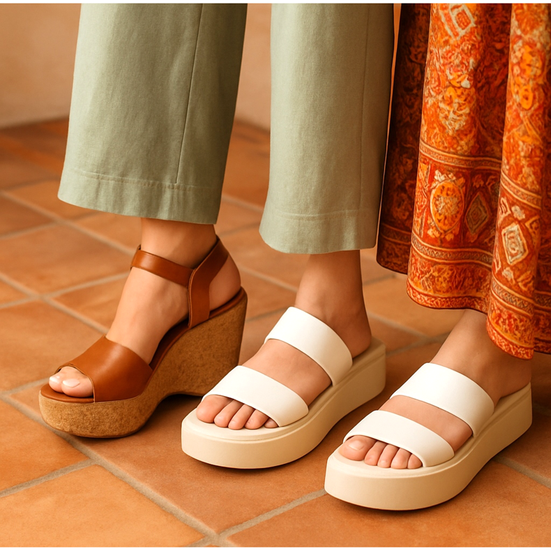 Ako volite potpetice, imamo dobre vijesti: vraćaju se udobne štikle i platforme, ali u laganijoj verziji. Sandale s plutenim potplatom u stilu sedamdesetih i japanke ravnog kroja dominirat će urbanim stajlingom. Stabilne su, dodaju centimetre i savršeno pristaju uz moderne široke palazzo hlače i maxi haljine u boho stilu.