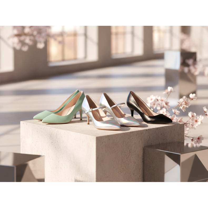 Jedan od najpoznatijih noviteta sezone je povratak kitten heels. Ove niske, tanke potpetice, visine 3-5 cm, savršeno postižu ravnotežu između elegancije i udobnosti. Modnim pistama dominirali su modeli sa špicastim vrhom, u pastelnim bojama i metalik varijantama.
