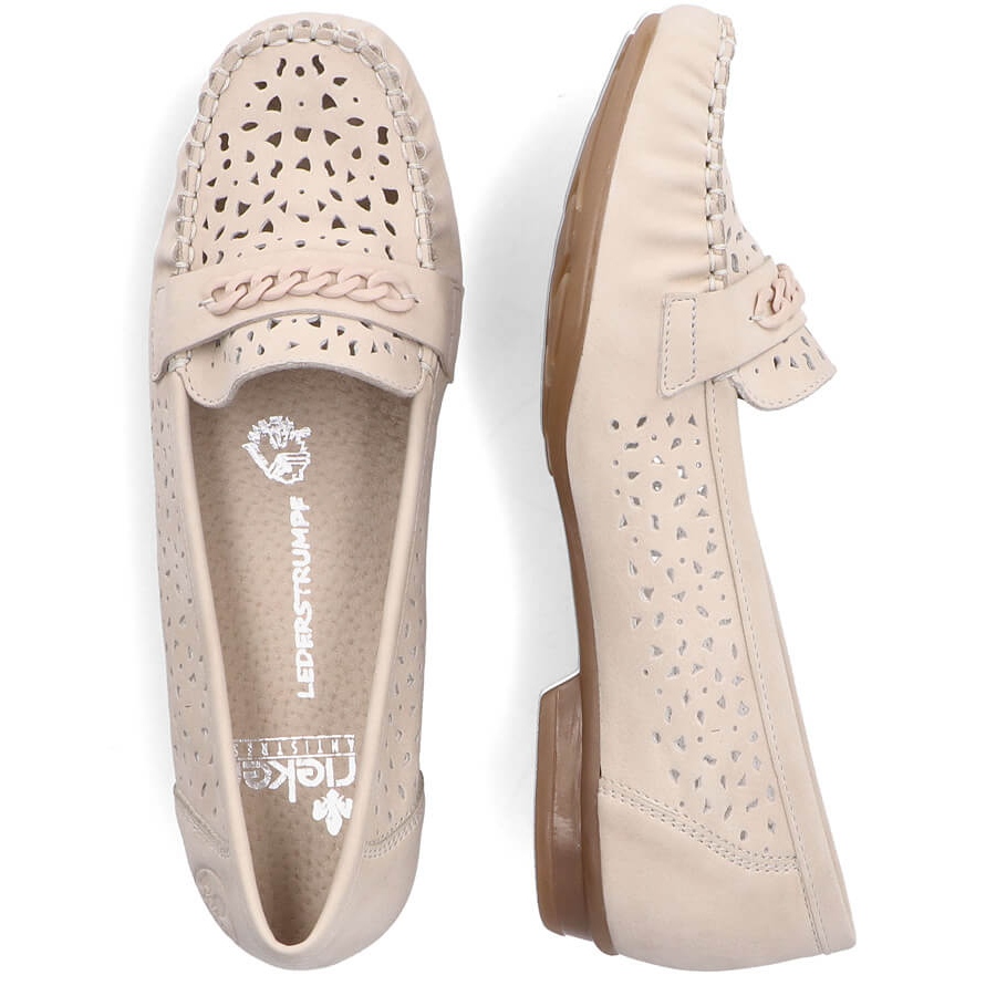 Pojedinosti: Udobne ažur ženske mokasine Rieker 40068-60 bež