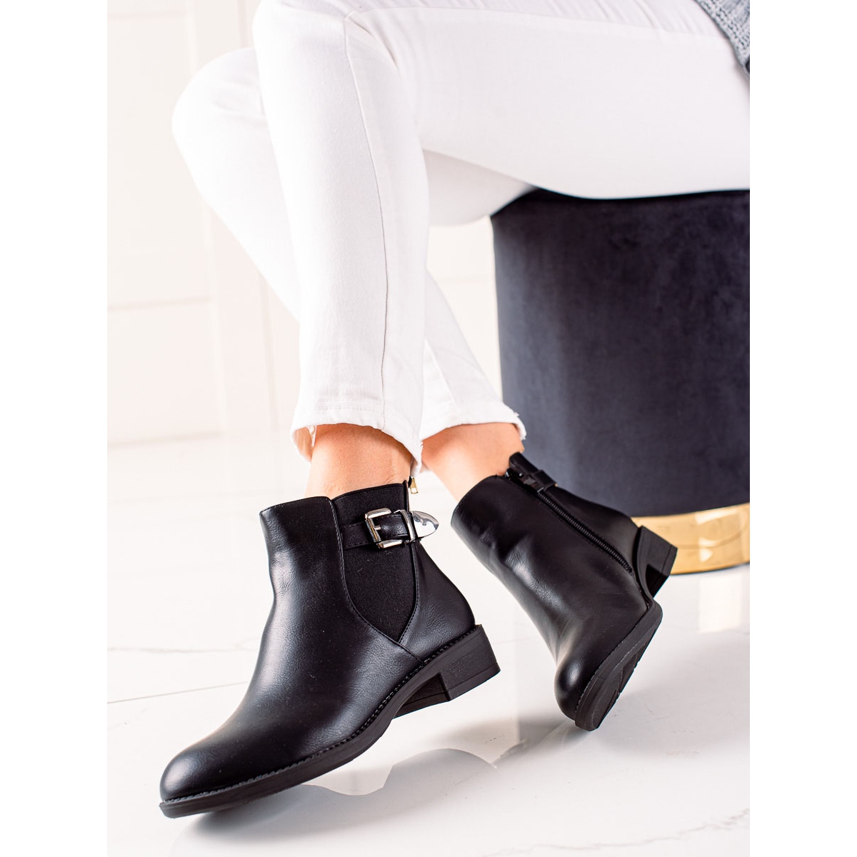 Potplat izrađen od sintetičkog materijala pruža dobro prianjanje, a ravna peta visoka 3 cm dodaje suptilan šarm bez žrtvovanja udobnosti. Dodatna prednost čizama je ukrasna kopča koja im daje karakter. Zatvarač olakšava obuvanje, što je izuzetno važno u svakodnevnoj upotrebi.